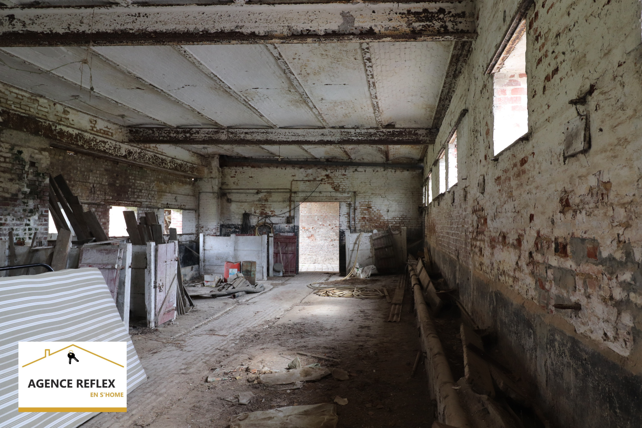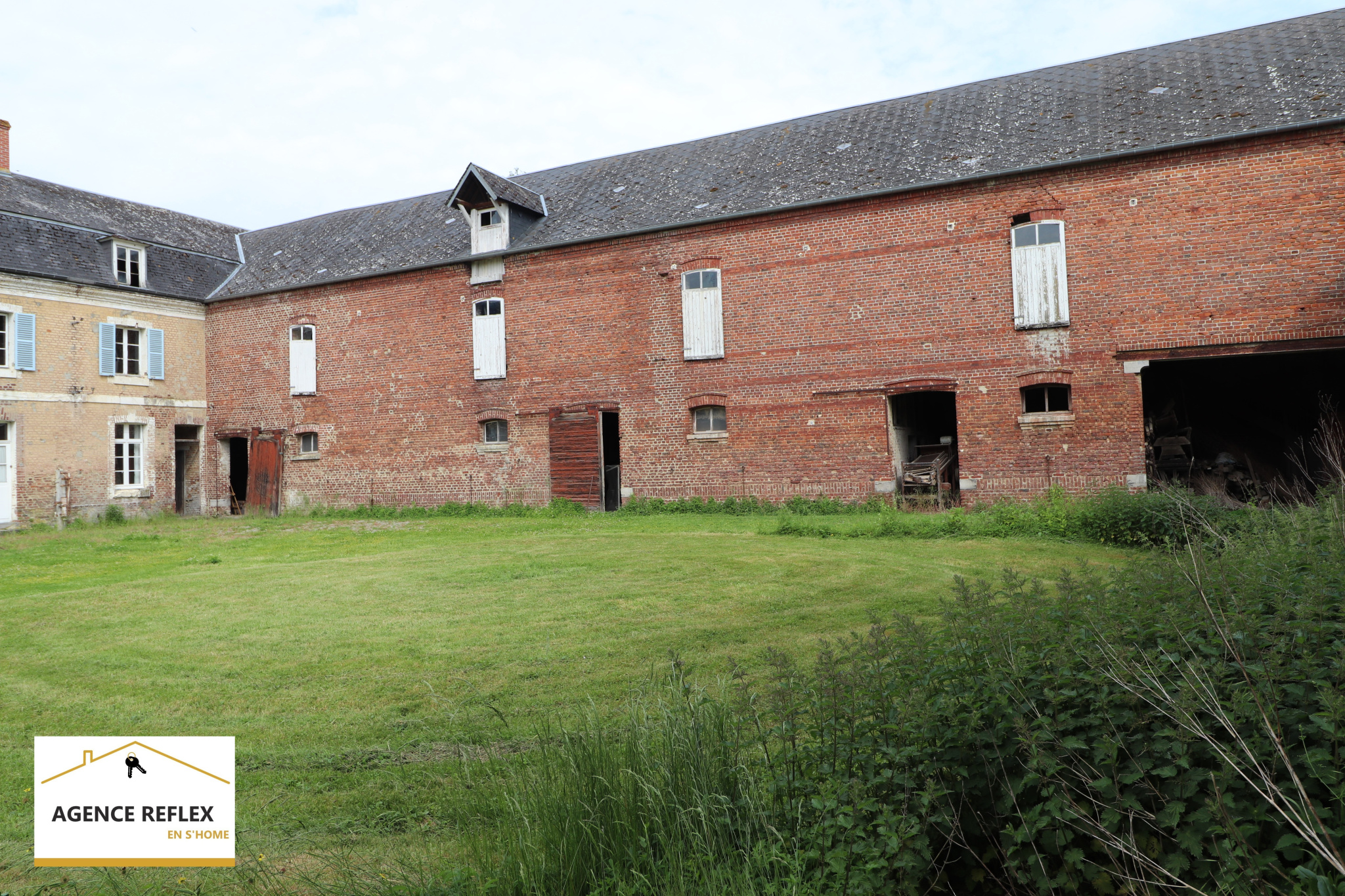 Reflex en S'Home Albert vous propose à la vente cette ancienne ferme Napoléon de 1824, située proche Amiens, Autoroute A1, Axe Albert Corbie, dans un village avec gare. Cette propriété offre la possibilité de développer un projet touristique dans son secteur très prisé pour les visites des Anglais ou Australiens mais également la possibilité de faire de l'évènementiel grâce à son magnifique parc arboré et sa forêt!! La maison se compose de plusieurs chambres sur deux étages ( 30 pièces en tout), d'une belle véranda de 40m2 avec vue sur le parc et d'une belle superficie au RDC pour créer un espace de vie volumineux. Sur le terrain vous pouvez découvrir un grand bâtiment de 1080m2 construit sur le côté qui offre la possibilité de faire une écurie, centre équestre ou activités commerciales, une ancienne étable à vaches de 300m2 avec grenier ( dalle béton) de 700m2 et sur le devant une grande dépendances de 300m2 permettant de créer aussi des logements. L'ensemble de la propriété est à rénover pour en exploiter pleinement son potentiel. Idéal aussi pour faire chambres d'hôtes, commerce de la ferme ou encore organiser des réceptions. Pour visiter contacter Reflex en S'Home 21 rue Lamarck : Sandrine Berton 06 72 36 25 66. RCS Amiens 504027806.