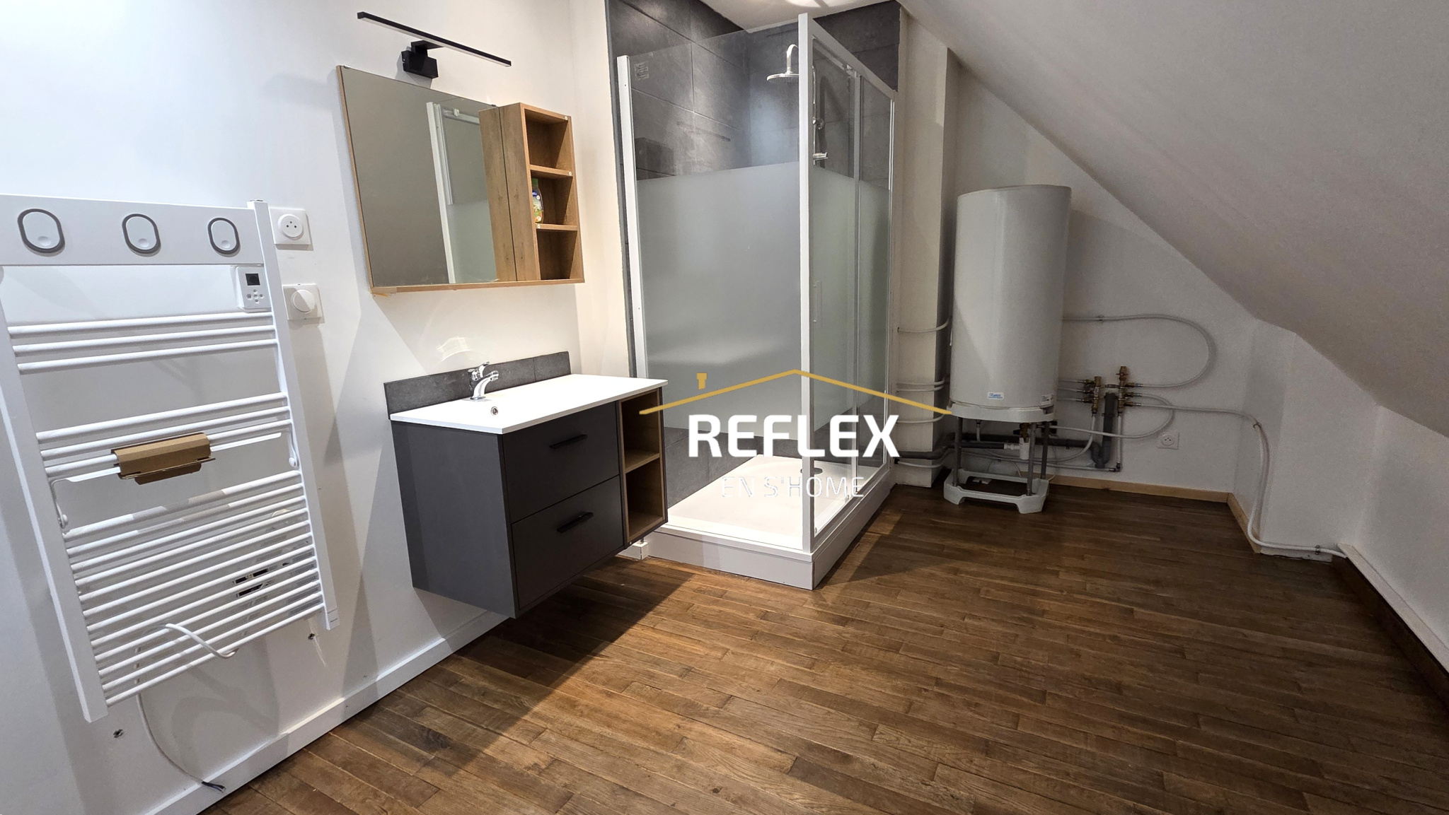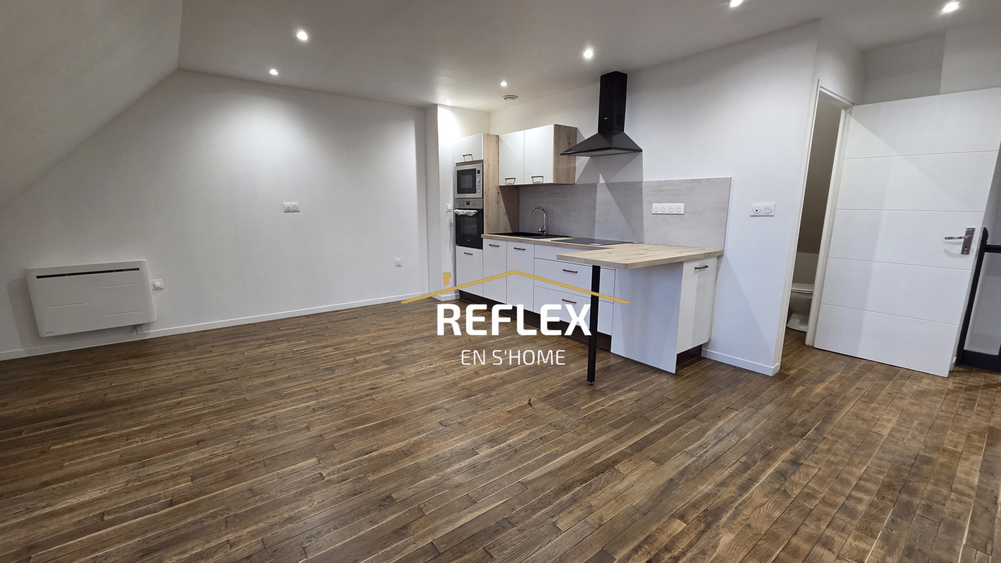 Votre agence immobilière Reflex en s'Home de Doullens vous propose à la location ce superbe appartement neuf de 45m2, situé au 3éme étage, il se compose D'une belle pièce de vie avec sa cuisine ouverte aménagée et équipée, une chambre et une spacieuse salle d'eau. Situé dans un petit immeuble de 3 appartements calme, en centre-ville. Loyer de 540€ (comprenant 50€ de charge pour l'eau et les OM) Caution de 490€ Frais d'agence de 335€ Libre de suite.